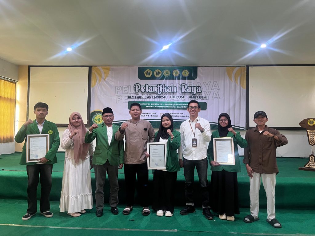 Jember – Fakultas Tarbiyah Universitas Islam Jember menggelar Pelantikan Raya Badan Eksekutif Mahasiswa (BEM) Fakultas Tarbiyah, Himpunan Mahasiswa Program Studi Pendidikan Agama Islam (HMP PAI), dan Himpunan Mahasiswa Program Studi Pendidikan Guru Madrasah Ibtidaiyah (HMP PGMI) periode 2025/2026 pada Senin, 23 Februari 2026, pukul 10.00 WIB. Kegiatan tersebut berlangsung khidmat dan menjadi momentum penting dalam proses regenerasi kepemimpinan organisasi kemahasiswaan di lingkungan fakultas.
