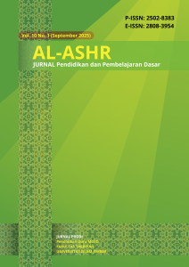 Journal Title Al-Ashr: Junal Pendidikan dan Pembelajaran Dasar, Initials (Al Ashr), Grade Accred Sinta 4 , Frequency 2 Issues/Year (March, September), Print ISSN 2502-8383 , Online ISSN 2808-3954 , Publisher Faculty of Tarbiyah, Islamic University of Jember