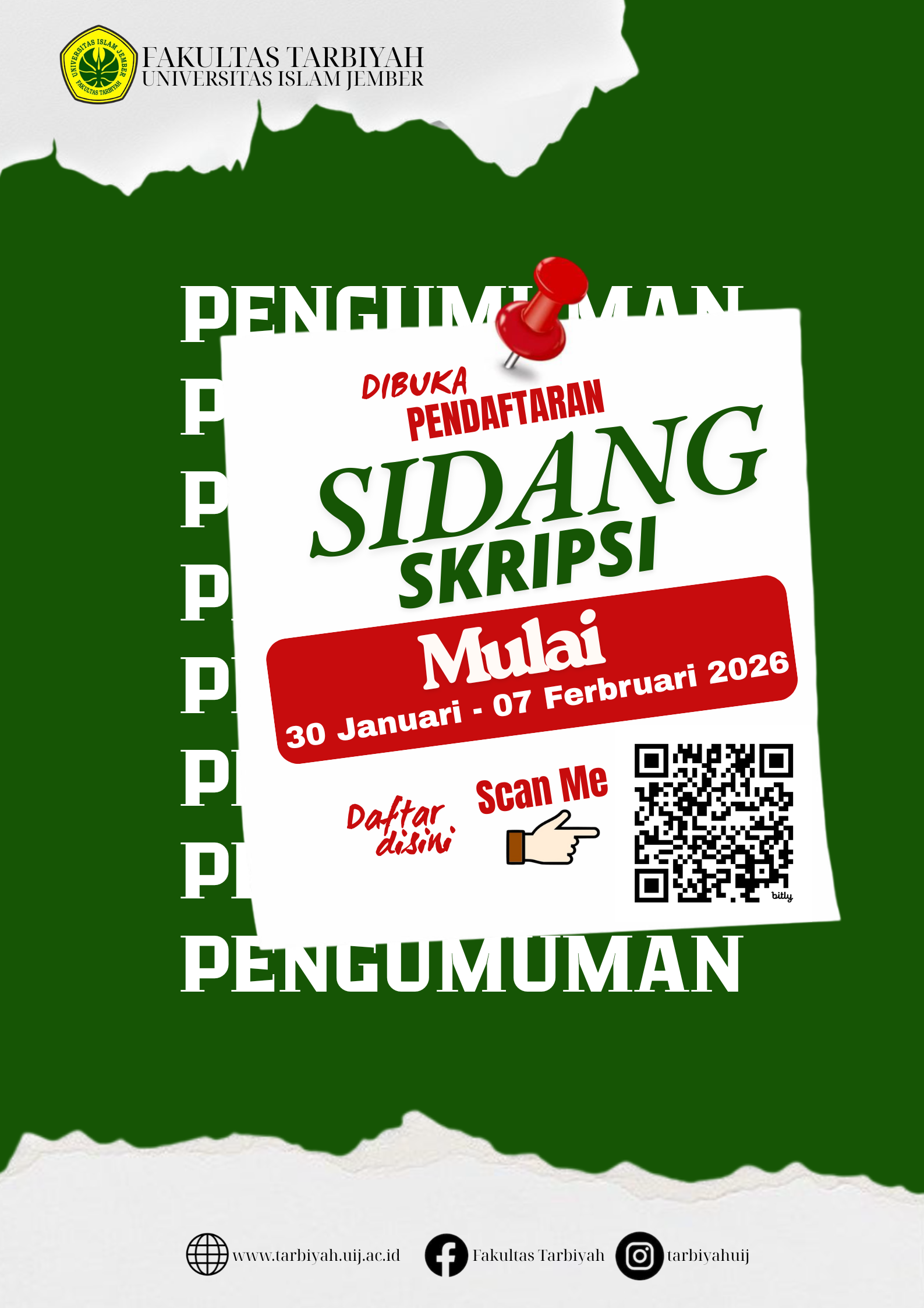 Fakultas Tarbiyah Universitas Islam Jember secara resmi membuka Pendaftaran Sidang Skripsi bagi mahasiswa Program Sarjana (S1).